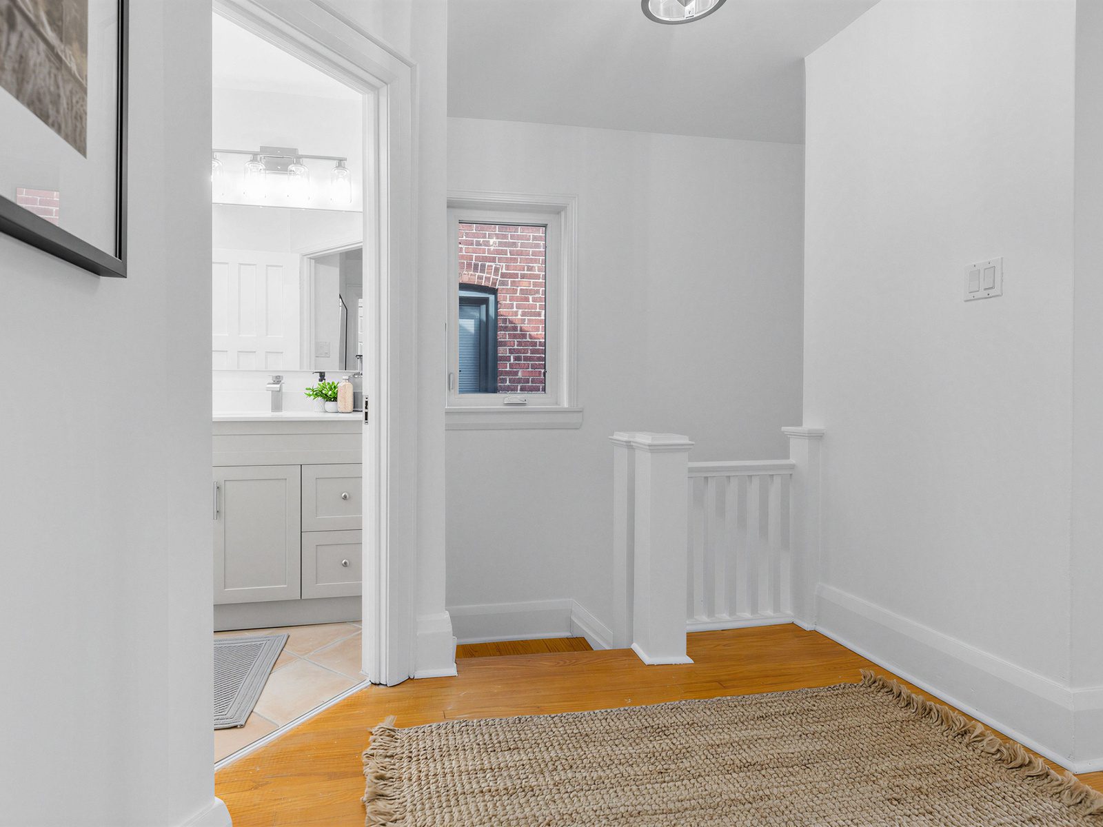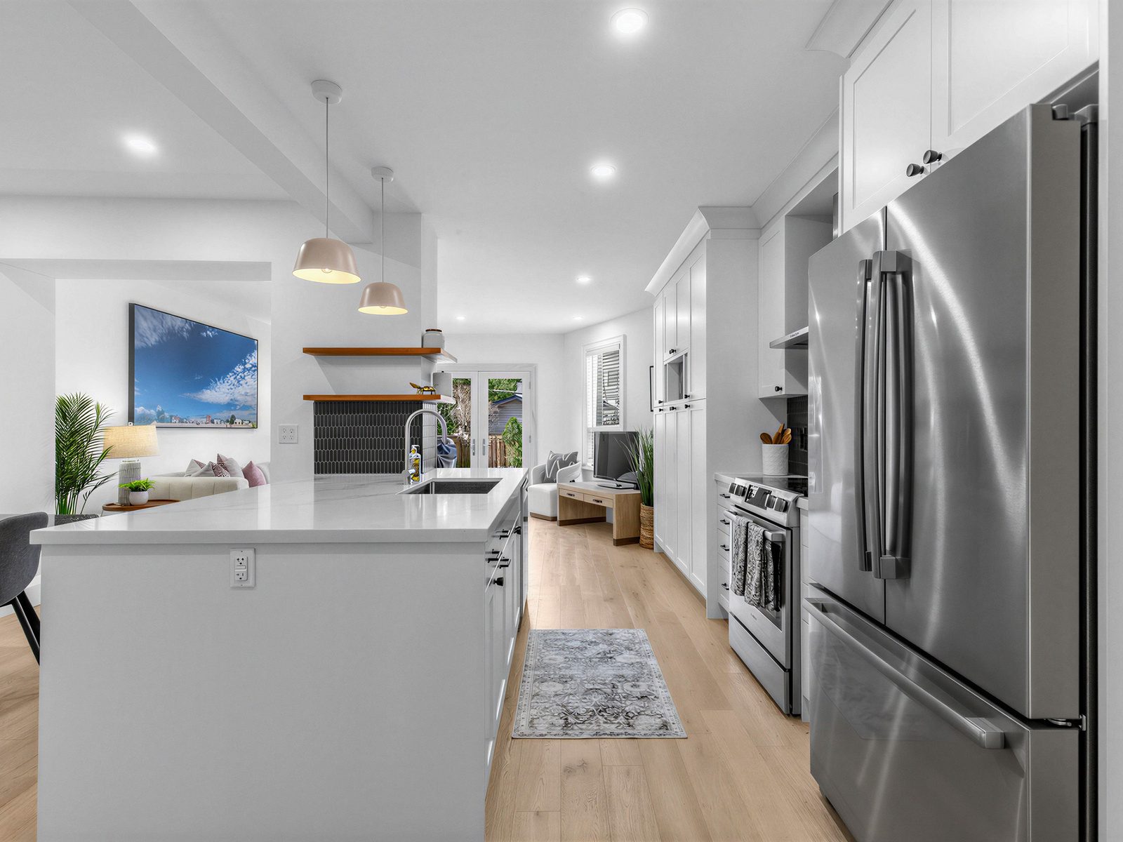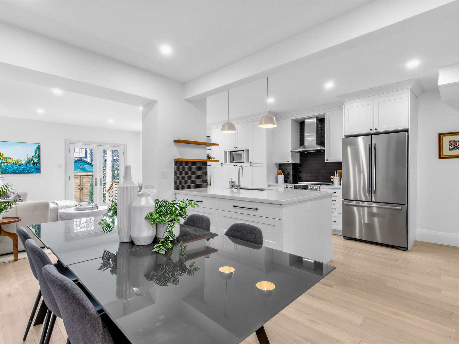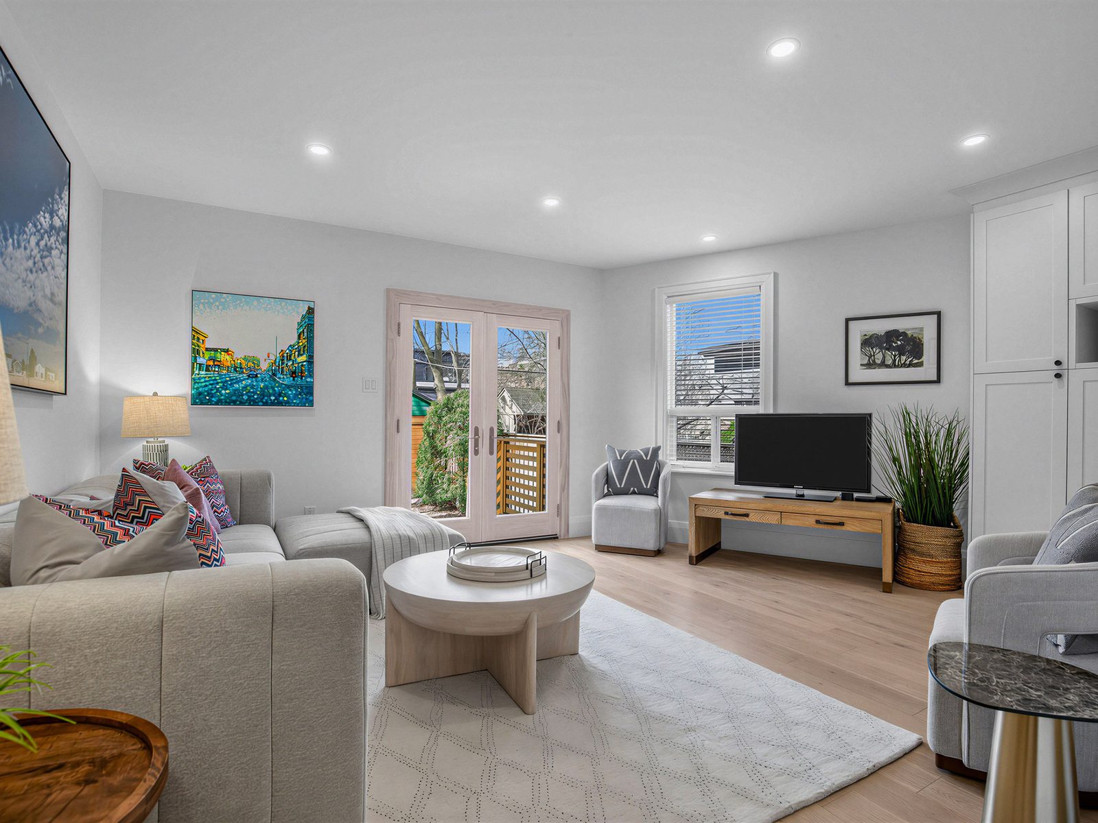 This beautifully renovated 2-storey 3+1 bedroom 3-bathroom home boasts an ideal combination of modern comforts & urban convenience. The perfect space for comfortable turnkey living. Main floor has generous living & dining rm & an easy flow & feel without losing intimate corners & private spaces. The modern kitchen is light filled & well laid out for the busyness of day to day living but with the ability to host large gatherings. Then tumble into the main floor family room for movie nights boardgames and just extra space for living that great big life. The 2nd floor offers a spacious primary retreat with a 3-piece ensuite bathroom plus his and hers closets walk in closets. Two additional well sized bedrooms & renovated family bathroom. Lower level has exceptional ceiling height, spacious rec room 4th bedroom, space for a home home office, dedicated storage and Mud room for all the extras…. Almost forgot the 3 piece bathroom. The light filled west facing yard has room for everything, play, entertaining & relaxing between the deck and landscaped area. Front pad w/parking for 1 car