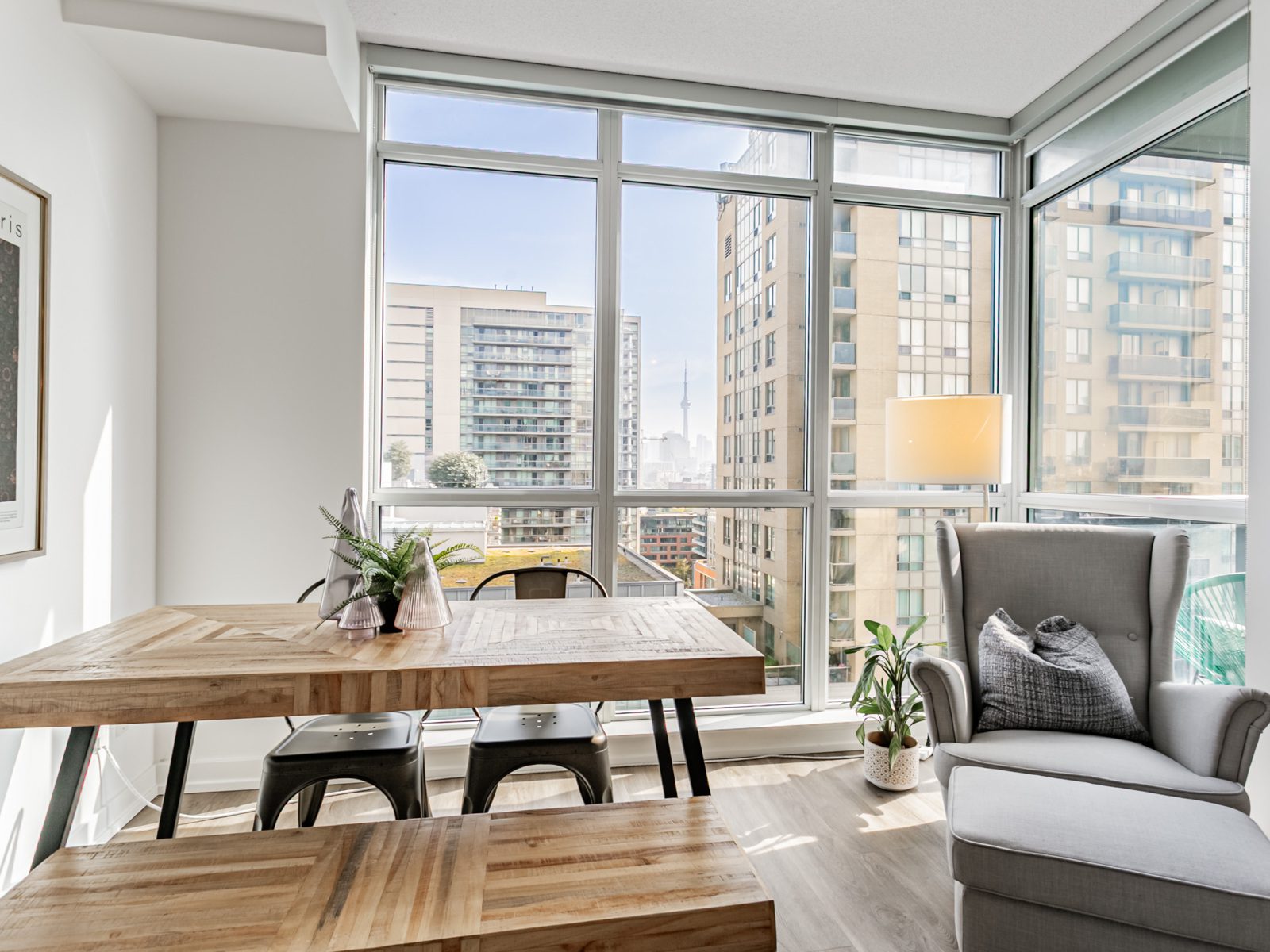 Welcome to 1171 Queen St W! Unit 1208 is a thoughtfully designed 1-bedroom, 1-bathroom condo offering stylish open-concept living in an unbeatable downtown location. The smartly planned layout makes the most of every square foot with no wasted space and distinct areas for working, reading, relaxing, dining, and entertaining. The sleek kitchen features stainless steel appliances, quartz counters, and a large, functional island – perfect for weeknight dinners or weekend entertaining. The spacious living and dining area is wrapped in floor-to-ceiling windows, filling the space with natural light and showcasing dynamic views of the city, including the iconic CN Tower. The bedroom provides a calm retreat with large windows and a walk out to an airy private balcony. One parking spot is included – a rare find in this prime location. The well-maintained building offers an abundance of useful amenities including a well-equipped gym, outdoor terrace with BBQs, theatre and working space, a 24/7 concierge and more. Transit is effortless, with the streetcar right at your doorstep connecting you to downtown and across the city in minutes. Steps from parks, boutiques, cafes, and some of the city’s best restaurants, this condo offers unbeatable access to everything that makes Queen West one of Toronto’s most desirable communities.