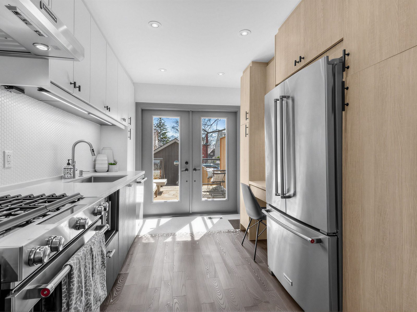 The main floor is bright, open, and effortlessly inviting — the kind of space where mornings begin slowly with coffee in the sun and evenings fill easily with friends, family, and the comforting rhythm of everyday life. Stylish details run throughout, the open plan Living and dining rooms offer space to spread out into, and the welcoming and private front foyer offers a place to tuck away the mess. At the heart of it all is a chef’s kitchen that is as functional as it is beautiful, opening directly onto the rear deck and yard. With its south-facing exposure, this outdoor space is a true sunshine lover’s dream — golden afternoon light, easy summer dinners, children playing in the yard, and a seamless connection between inside and out. A main floor powder room adds everyday practicality to the level.