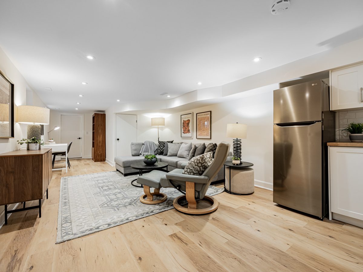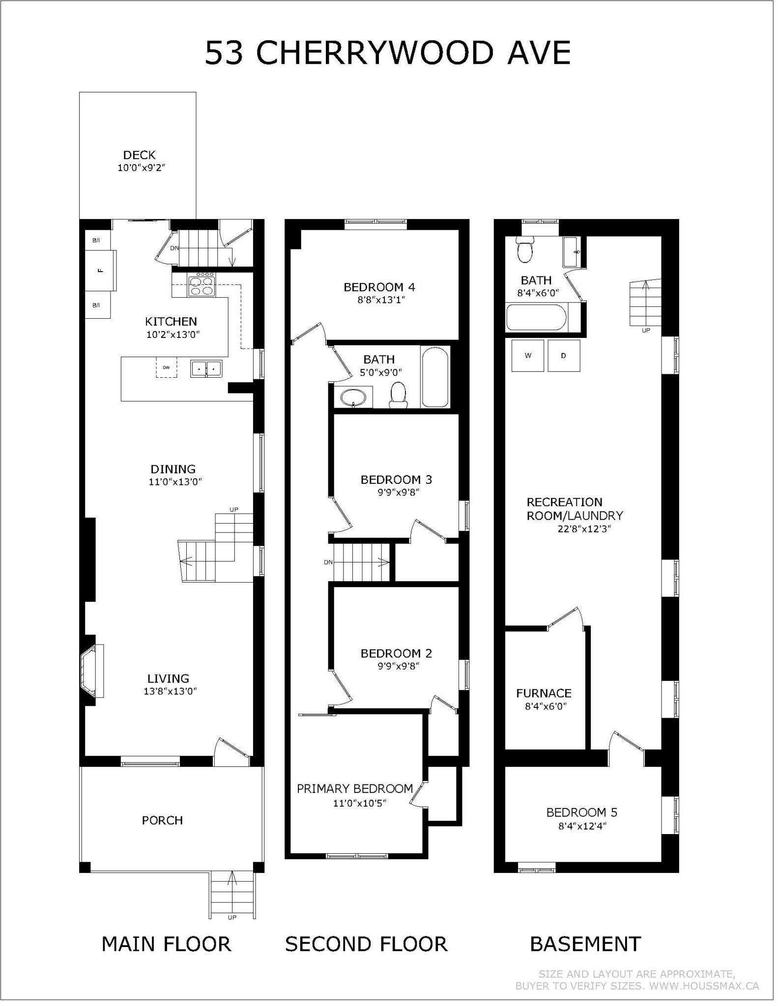 Light filled open plan main floor with a modern kitchen. Second floor features 4 equally sized bedrooms and a renovated modern bathroom. Easily live in as is or go from 4-3 bedrooms and create a charming primary with ensuite bathroom so many options here. The lower level has a separate entrance a 5th bedroom and oversized rec room, a full family bathroom and dedicated laundry easily converted into a second kitchen if you want an in-law or income suite in the basement. Walk out from the main floor onto your deck and into your deep east facing yard lots of space for play or easy summertime. Be right where you belong in this outstanding St Clair W community. Plus Easy parking on the licensed front pad.