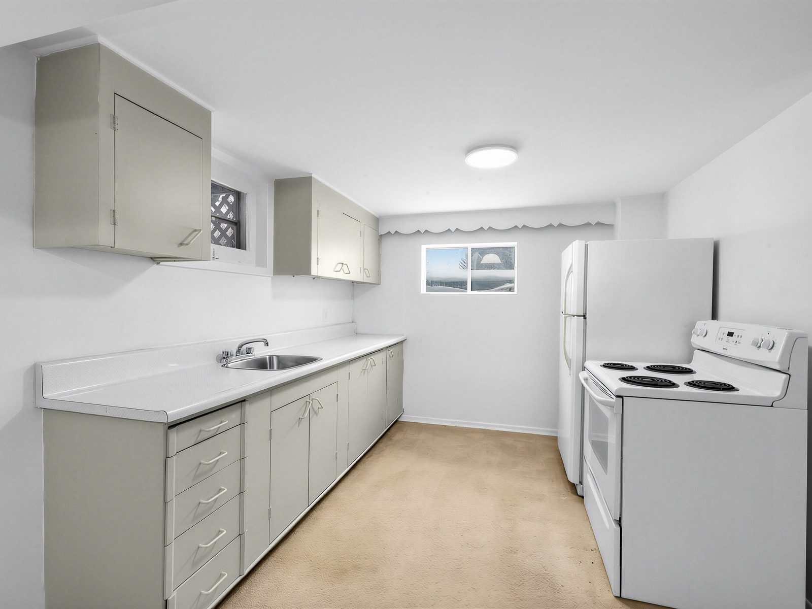 The lower level is bright and expansive, enhanced by above-grade windows that bring in natural light. Currently configured with a kitchen, bathroom, and bedroom, it offers flexibility for extended family, a live-work setup, recreation space, or potential secondary suite use (subject to approvals).